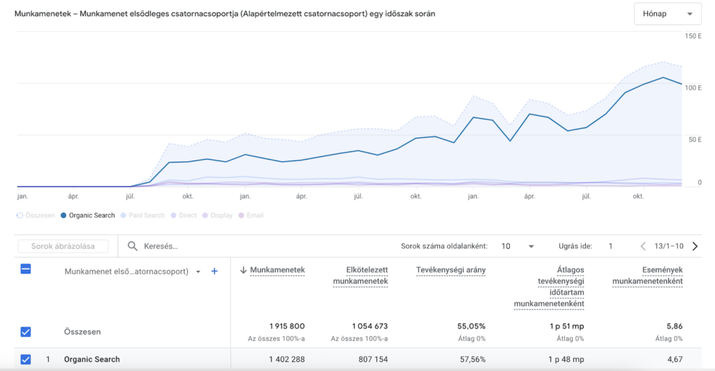 Az egyik legkorábbi SEO ügyfelünk blogjának organikus forgalmát sikerült néhány hónap alatt több, mint 50%-al növelni.